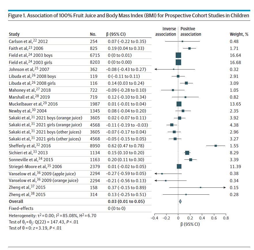 체중 증가와의 연관성 분석 과일 주스는 건강한 이미지로 인해 많은 가정에서 어린이에게 제공되지만, 실제로는 체중 증가와 관련이 있을 가능성이 큽니다. 특히 어린이는 성인보다 과일 주스의 영향을 더 크게 받을 수 있기 때문에, 부모들은 신중한 섭취 가이드가 필요합니다. 최근 발표된 체계적 문헌 고찰 및 메타분석 연구에서는 100% 과일 주스 섭취가 아동과 성인의 체중 변화에 미치는 영향을 분석했으며, 그 결과 어린이에게 미치는 영향이 더욱 두드러진 것으로 나타났습니다. 이번 글에서는 해당 연구 결과를 일반인이 쉽게 이해할 수 있도록 정리하고, 어린이가 왜 더욱 주의를 기울여야 하는지 설명하겠습니다.Source: Consumption of 100% Fruit Juice and BodyWeight in Chi..